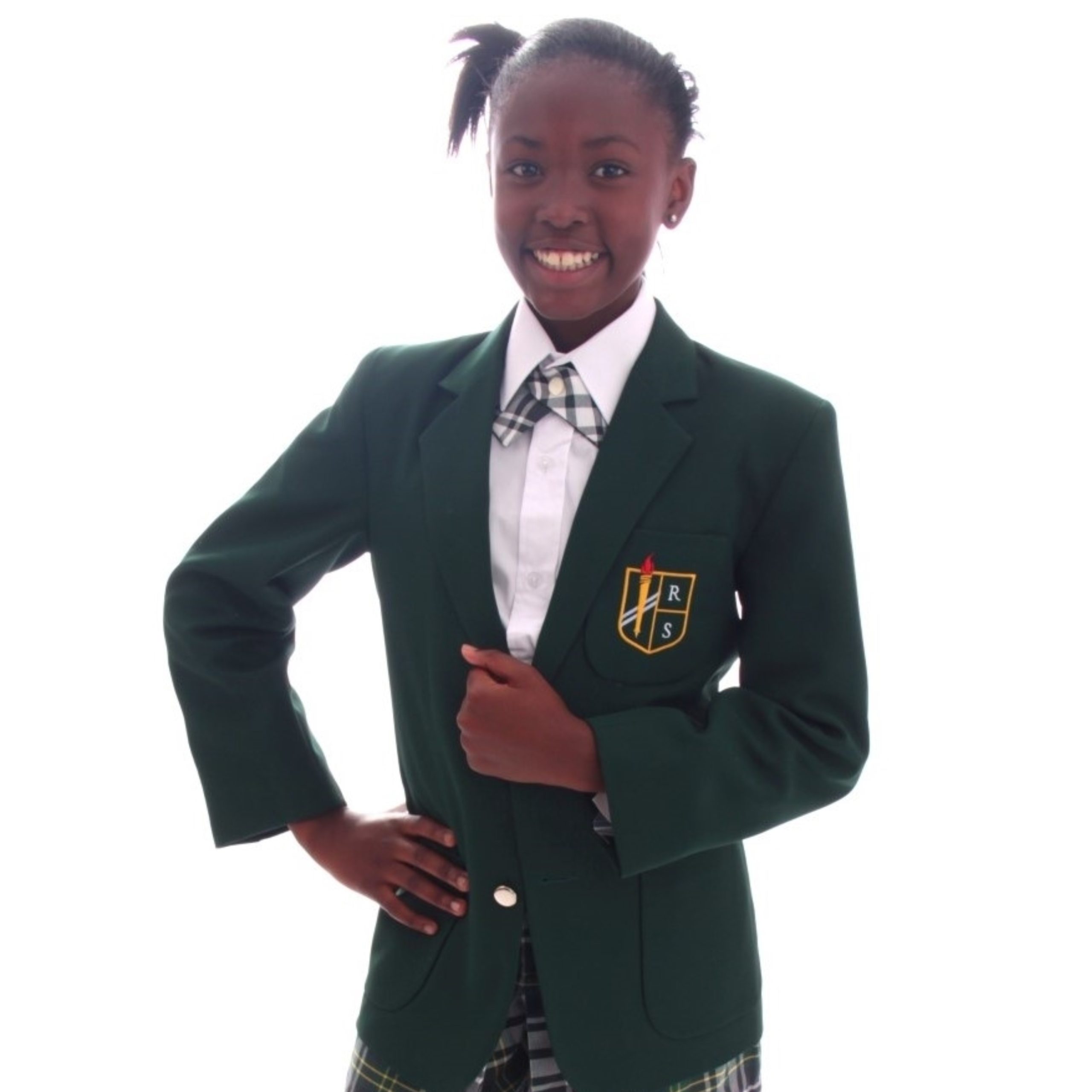 Unisex bottle green blazer with school badge embroidered in the front pocket. Compulsory uniform from grade 6.